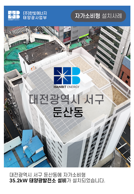 대전광역시 서구 둔산동에 자가소비형 35.2kW 태양광발전설비 설치 사례